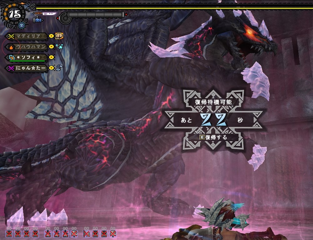 また、救助完了まで長時間硬直する「気つけ薬」をモンスターの傍で使用するのは危険。