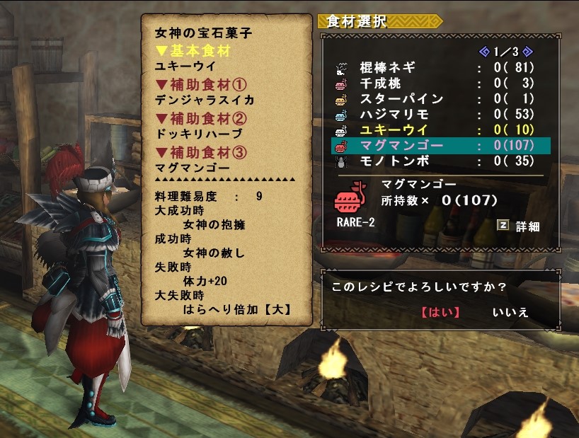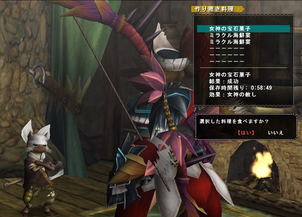 猟団料理を食べると、特定の防具スキルと同じ効果を60分間得ることができます。