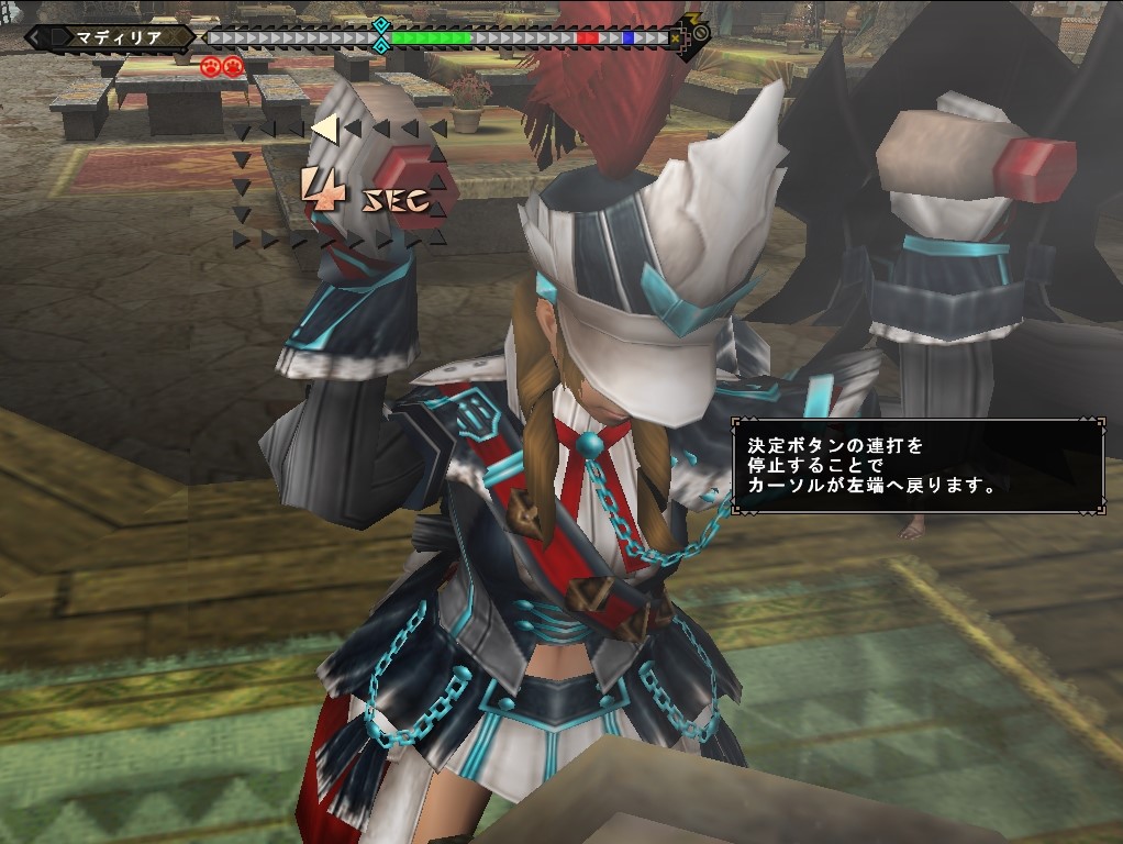 決定ボタン(〇ボタンなど)を連打すると、蒼色のカーソルが右に向かって移動します。
