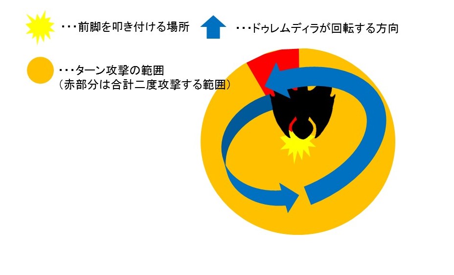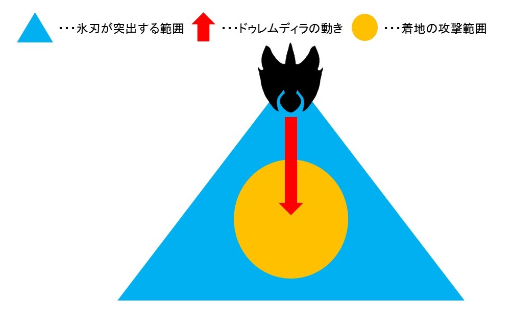 攻撃範囲はドゥレムディラの位置に関係なくエリアの全域となっている。