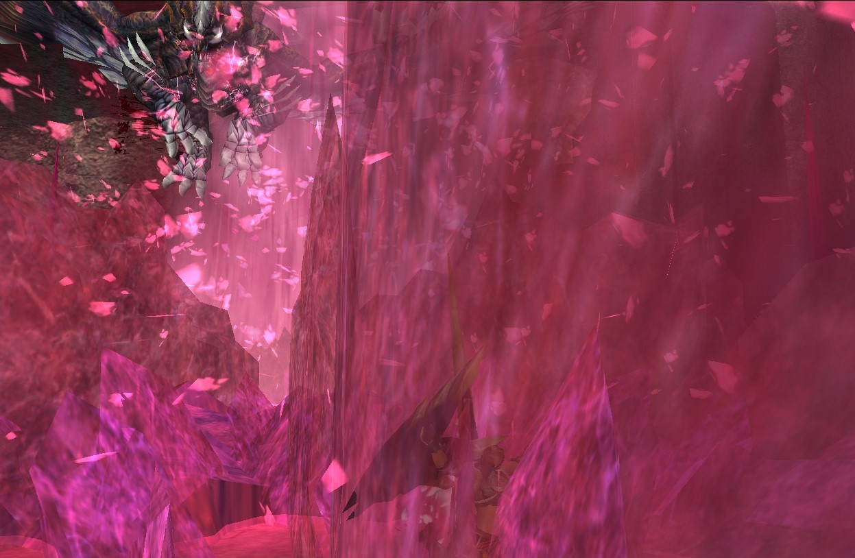 前脚の叩き付けによって周囲を結晶体で覆い尽くす攻撃を続けて行う。