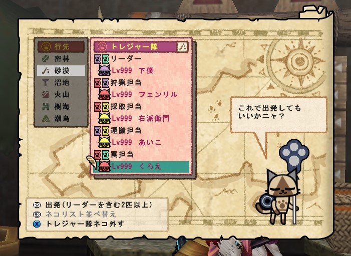 猟団部屋には「トレジャーネコ」と「猟団トレジャー」という、