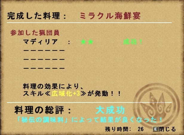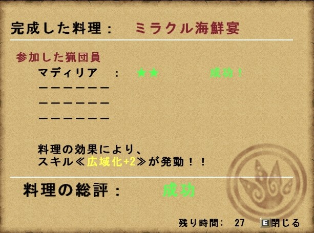 また、4人で猟団料理に挑戦し、全員が成功以上になった場合も、