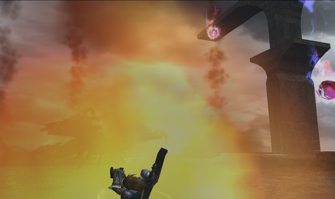 UNKNOWNがハンターの頭上でブレスを吐くので、それをギリギリの位置で回避する。